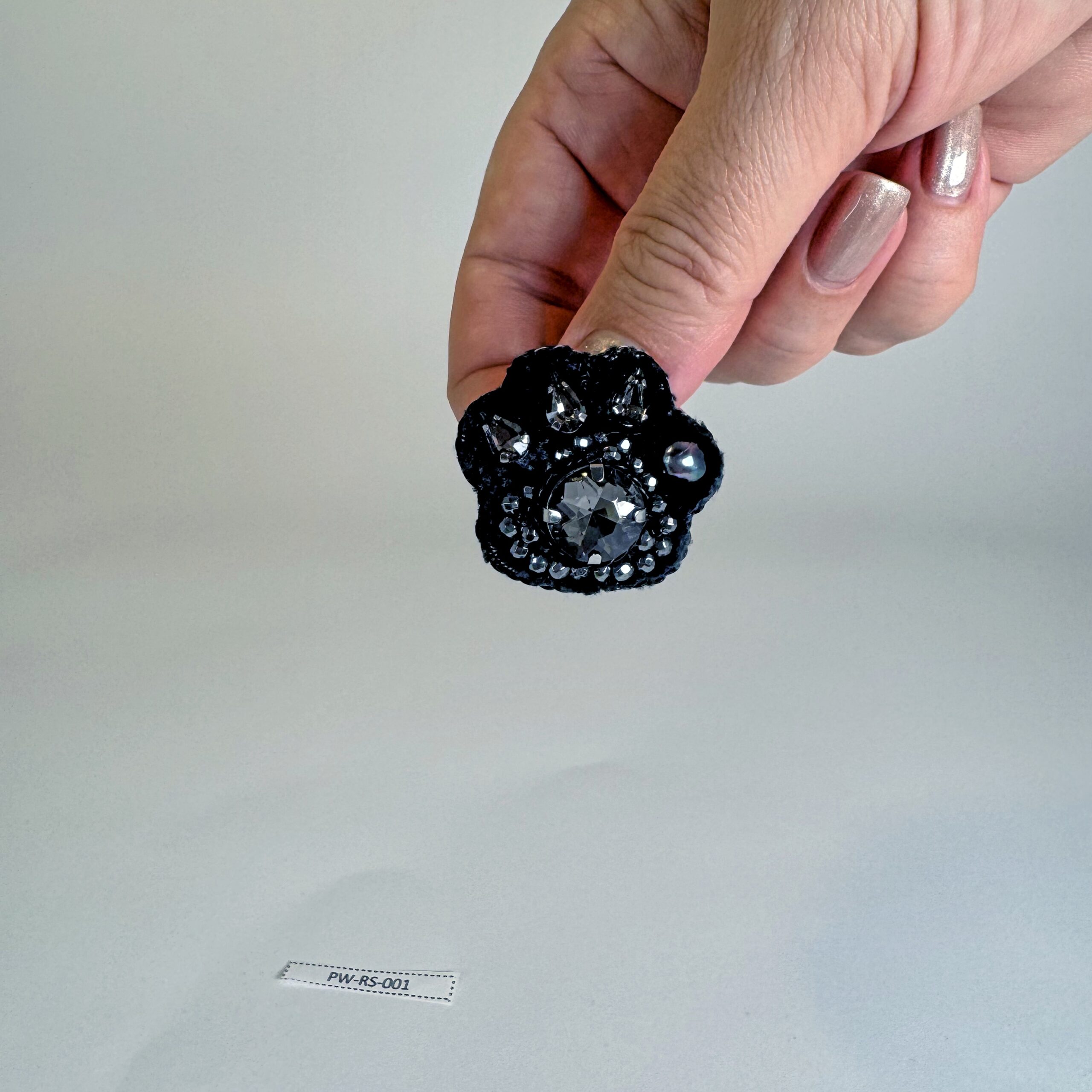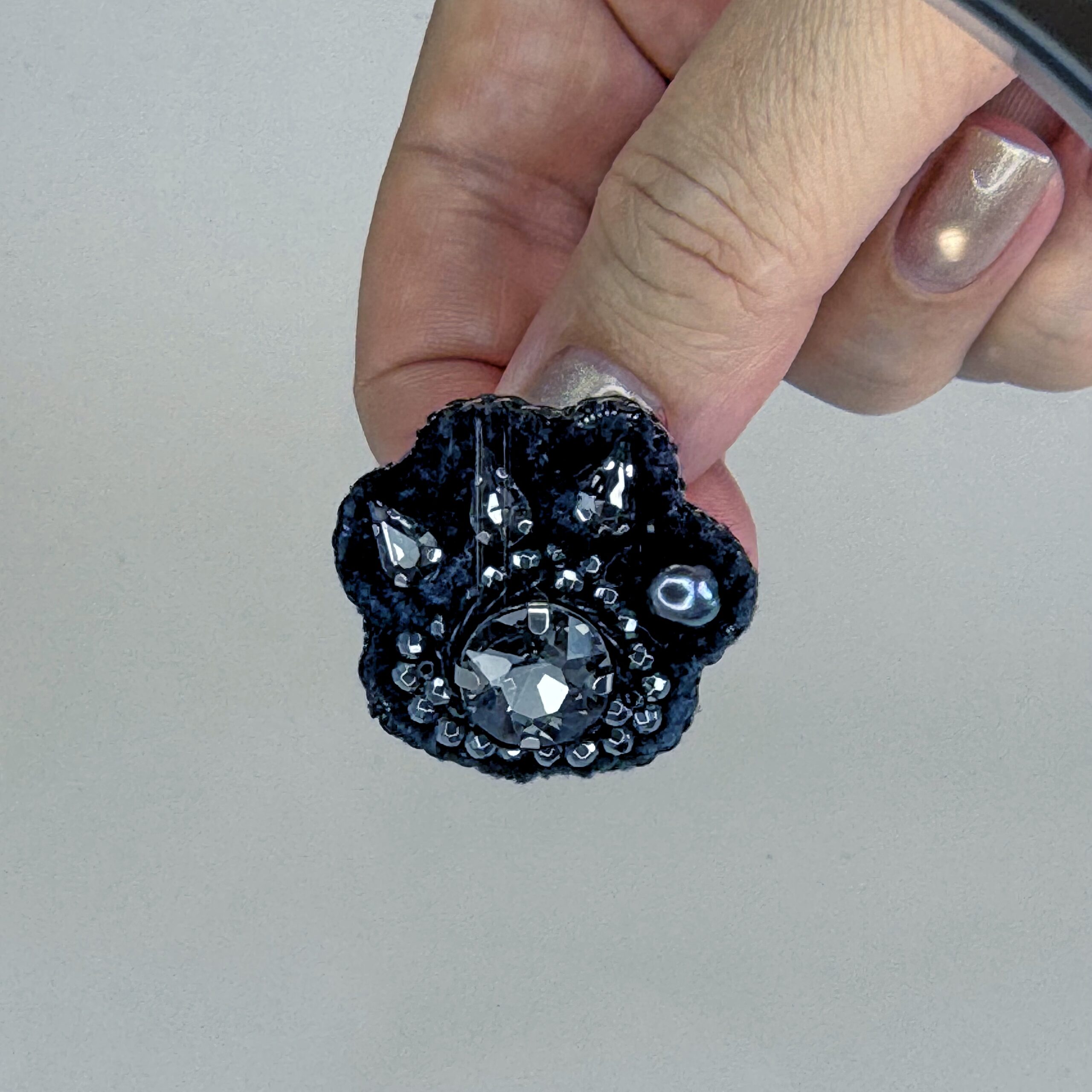 гематит; шпинель; кристаллы; пайетки; жесткая канитель; натур.жемчуг; нить мех.; спинка -бархат; боковина -пайетки; замок -