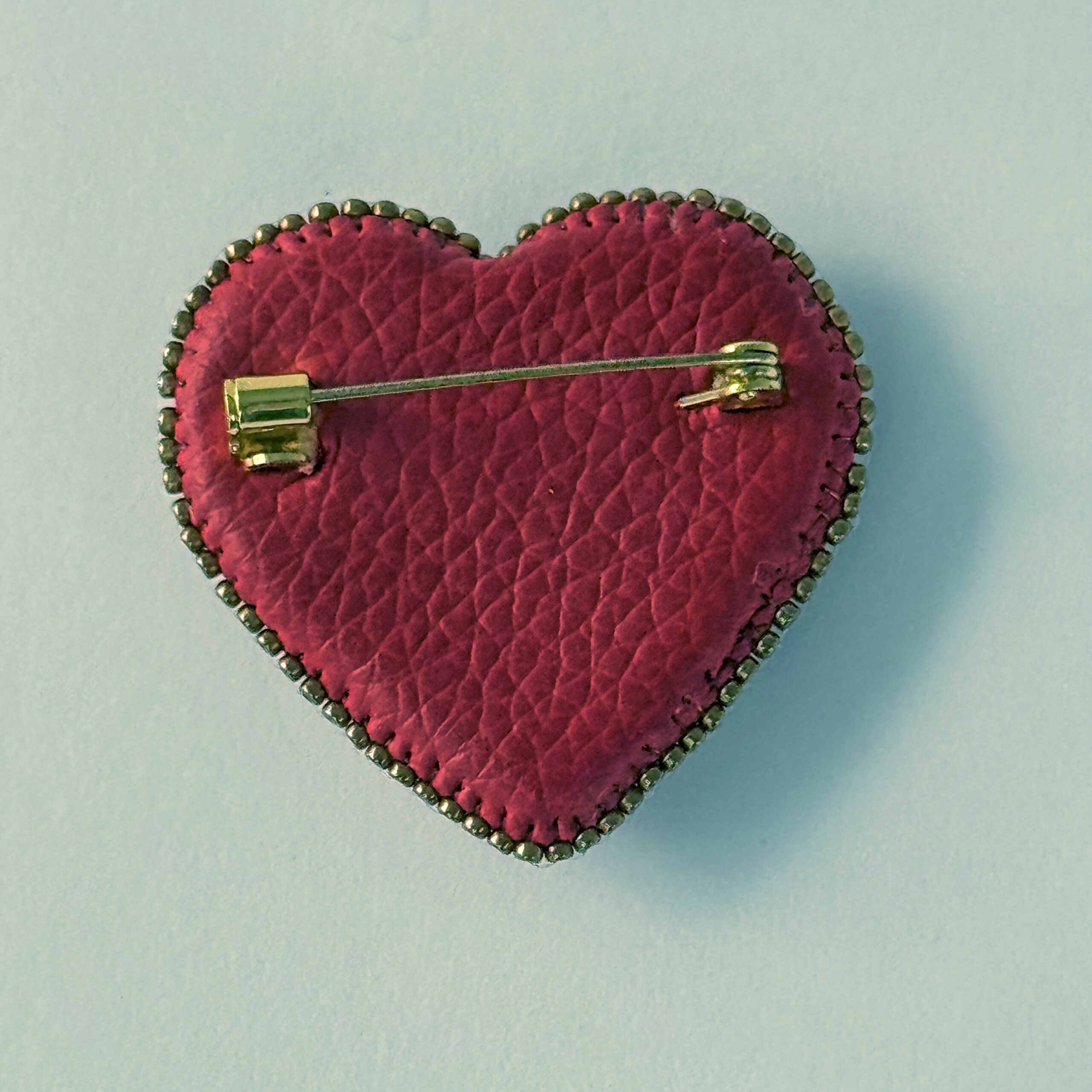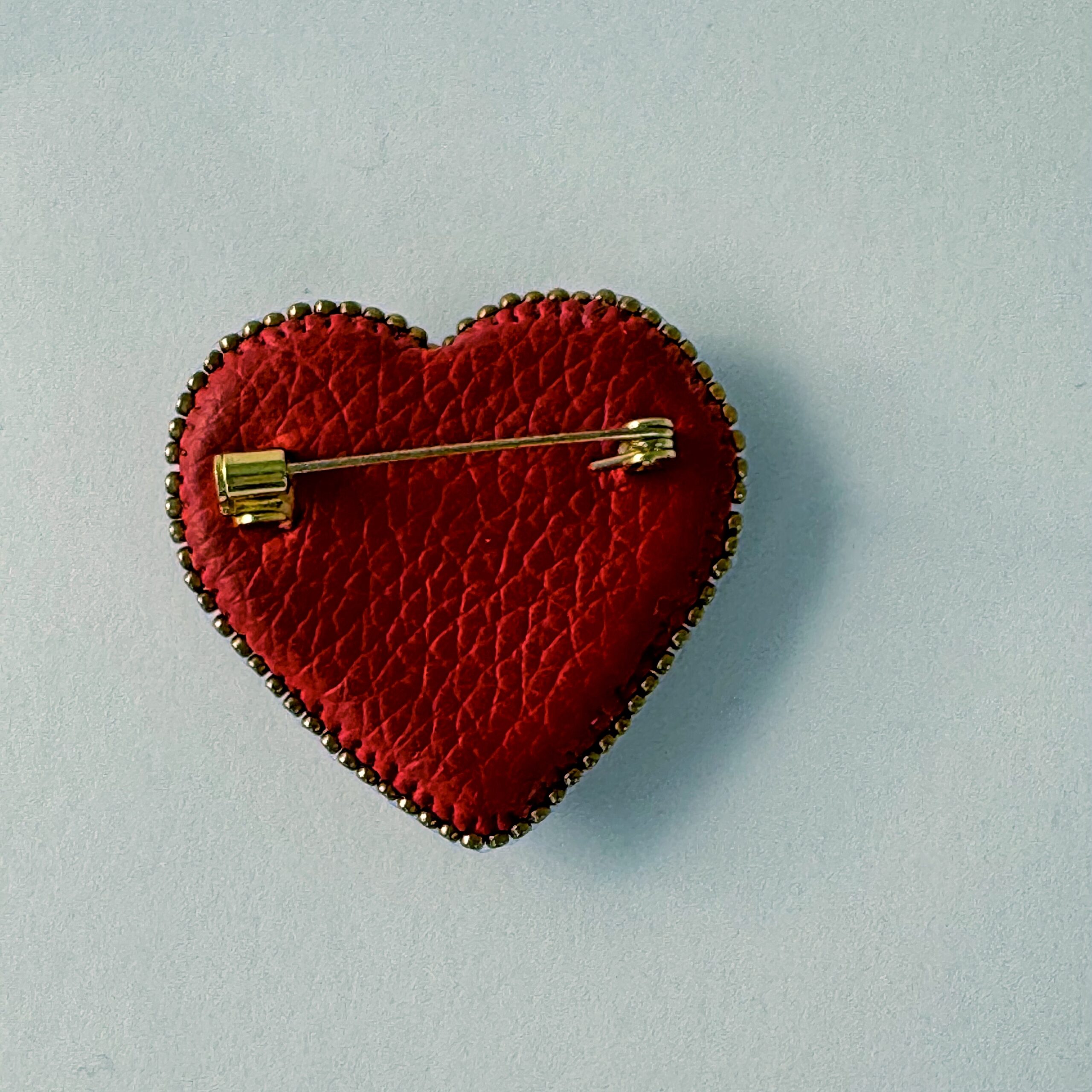 The crystal catches light beautifully — wear it on a structured jacket or coat where it can move and sparkle freely. The red and gold combination is festively glamorous for Christmas or Valentine's Day occasions.